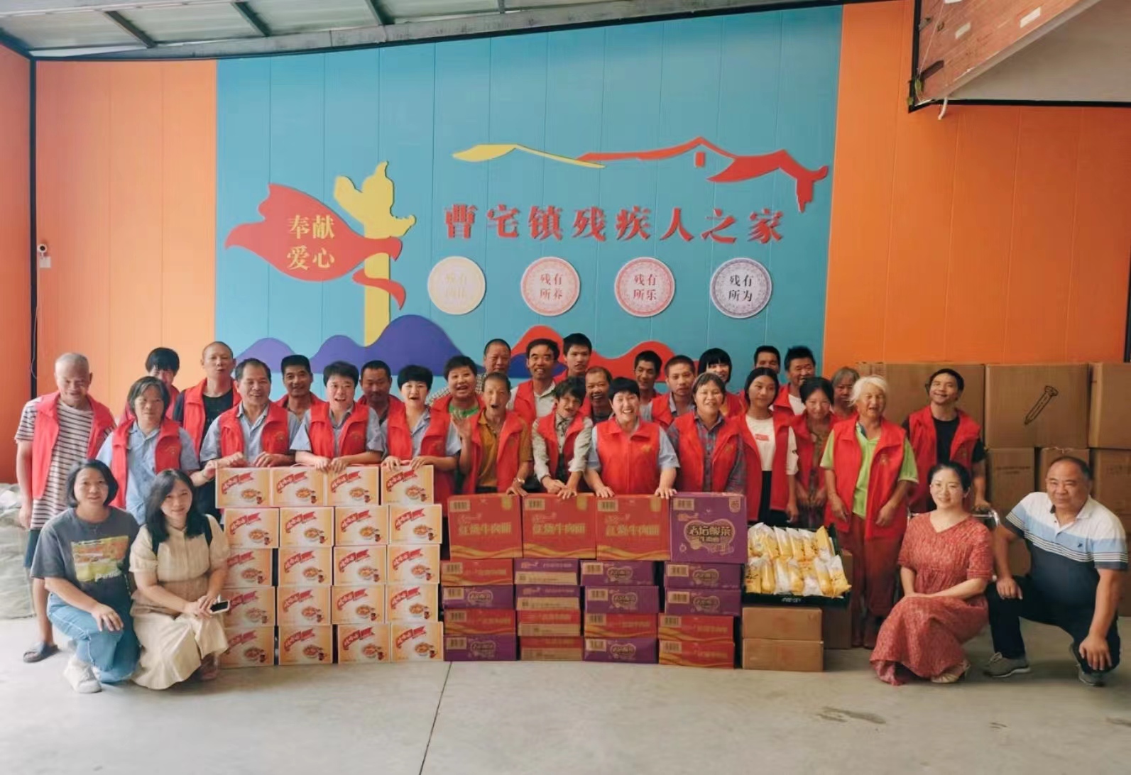? 殘疾人之家的負(fù)責(zé)人金姐緊緊地握住慰問人員的手說:“你們送來的物品正是我們所需要的,謝謝你們!”樸實(shí)的殘疾人士一個(gè)個(gè)露出愉悅的笑容,有的連聲說著“謝謝!”、有的拍手歡呼、有的開心地唱起了歌...歌聲與歡笑在并不寬敞的廠區(qū)內(nèi)匯成了歡樂的海洋,他們用最簡單質(zhì)樸的方式表達(dá)著對集團(tuán)慰問的感謝之情。最后大家在一起合影留念,記錄下這一有意義的時(shí)刻。