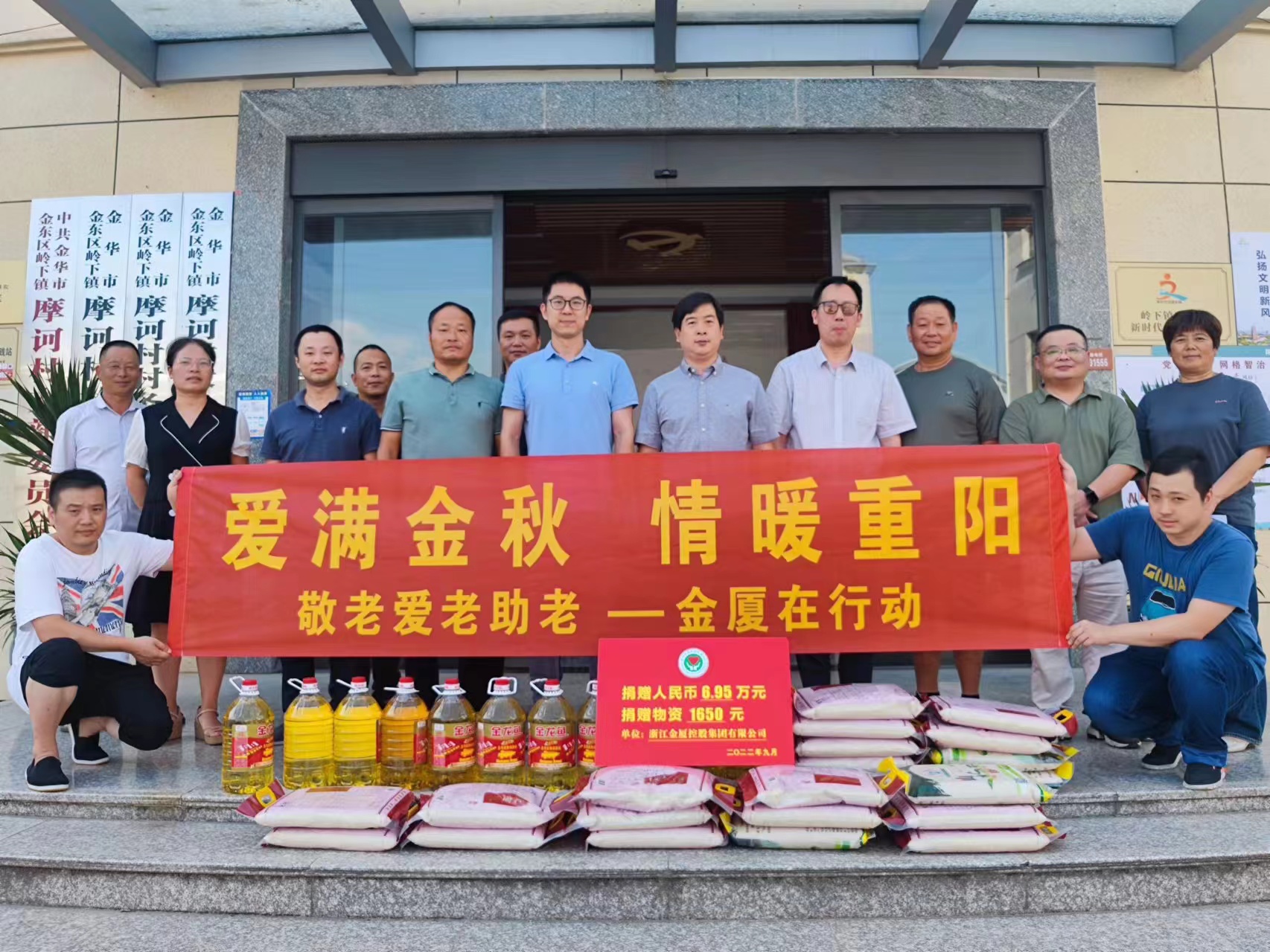 ? 本報(bào)訊?國慶前夕,集團(tuán)董事長蔣晨虹和總裁傅融分別帶領(lǐng)集團(tuán)領(lǐng)導(dǎo)班子成員前往金東區(qū)傅村鎮(zhèn)博文實(shí)驗(yàn)學(xué)校、金東區(qū)嶺下鎮(zhèn)摩訶村,開展了愛心助學(xué)及重陽節(jié)慰問活動(dòng)。