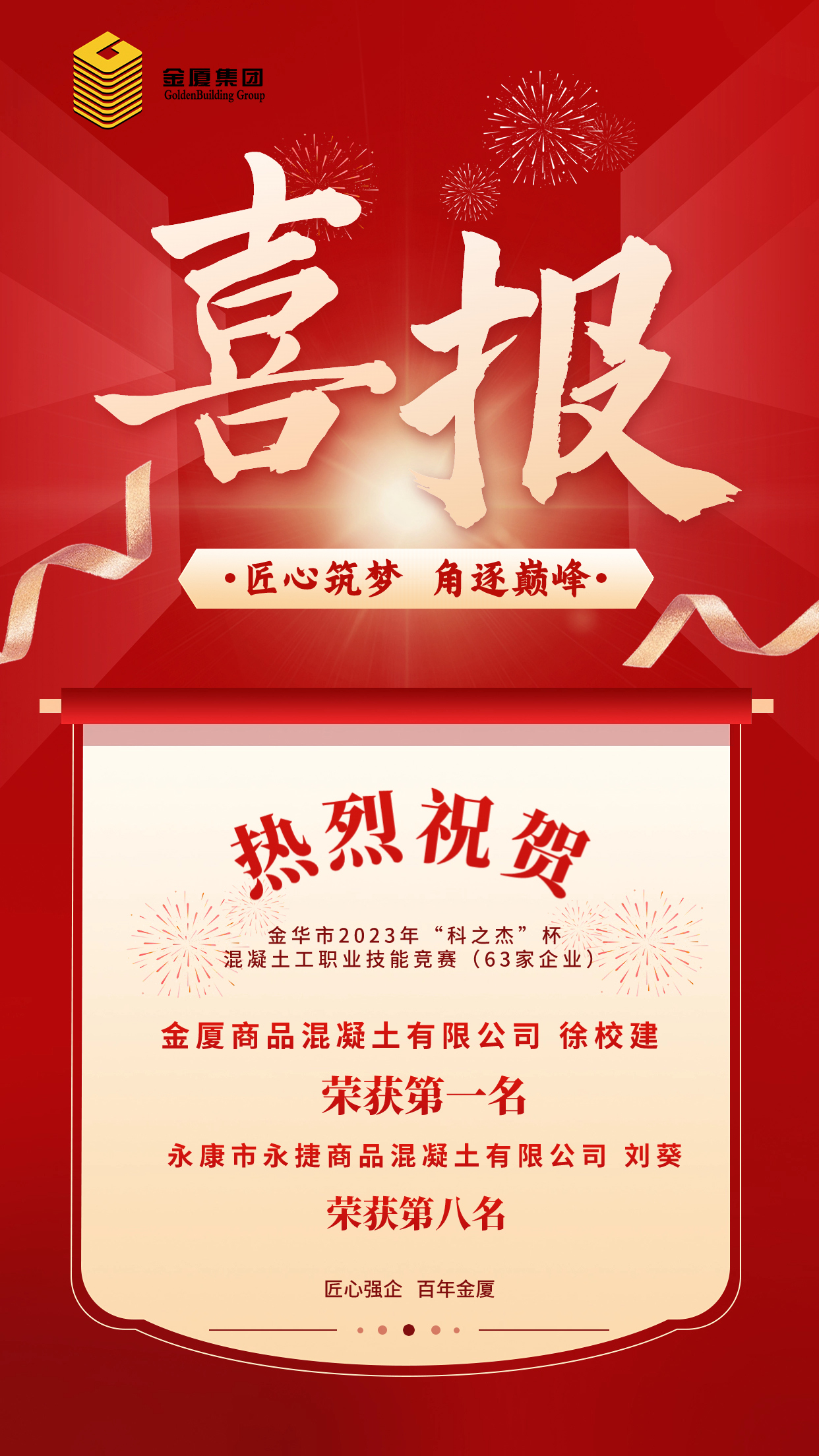 喜報!金廈集團徐校建勇奪金華市混凝土工職業(yè)技能競賽第一名!