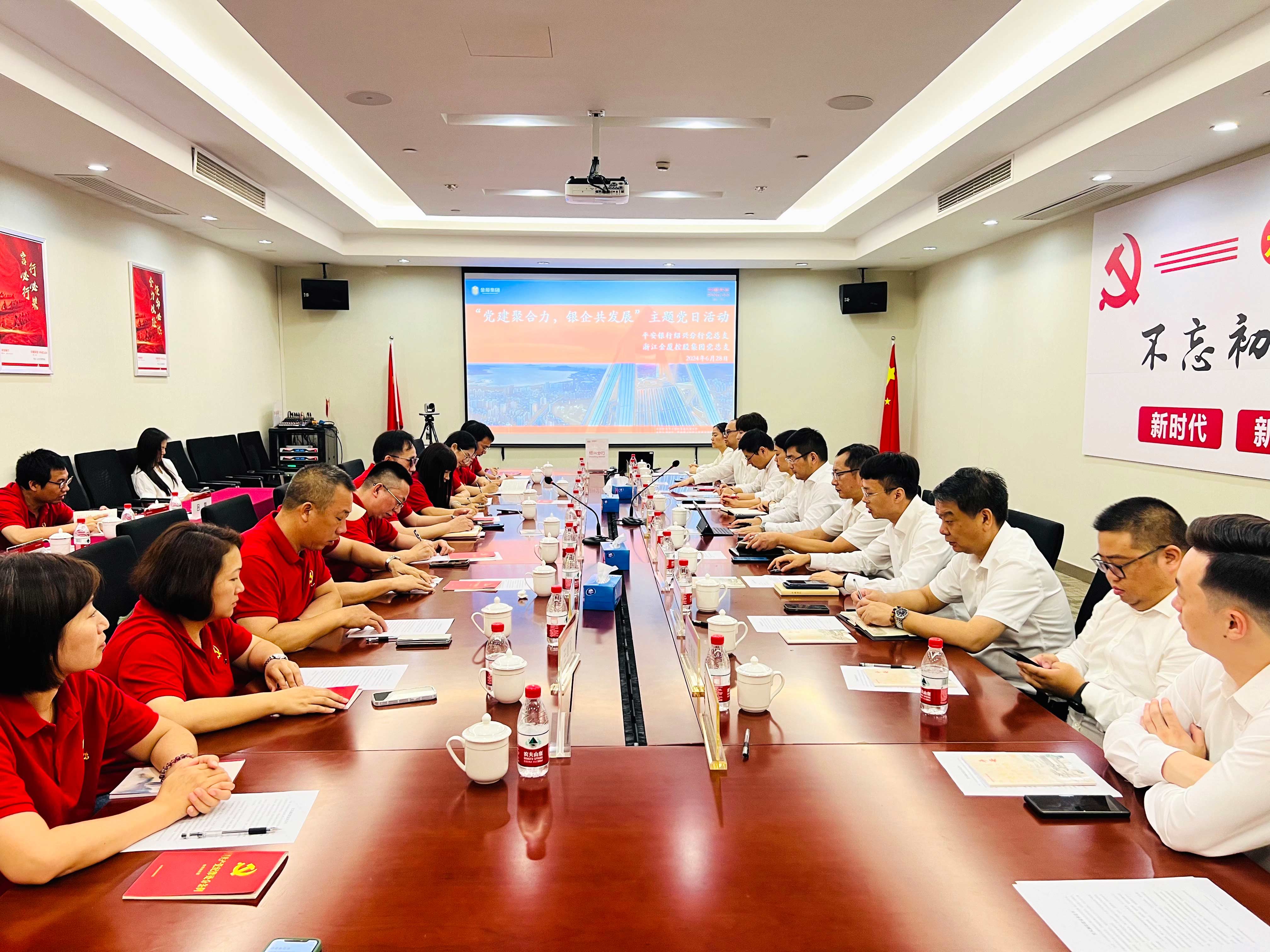 參觀(guān)結(jié)束后,所有黨員一同前往平安銀行紹興分行本部參加銀企座談會(huì)。在開(kāi)場(chǎng)中,葉飛行長(zhǎng)代表平安銀行紹興分行熱烈歡迎金廈集團(tuán)的黨員干部們來(lái)到紹興、走進(jìn)紹興分行,并對(duì)平安銀行的歷史沿革和業(yè)務(wù)脈絡(luò)進(jìn)行了簡(jiǎn)要介紹。葉行長(zhǎng)表示,金廈集團(tuán)是紹興分行合作時(shí)間最久的一家優(yōu)質(zhì)民企,雙方在長(zhǎng)達(dá)15年的合作中始終不離不棄,打下了深厚的互信合作基礎(chǔ),樹(shù)立了良好的銀企合作典范。他希望雙方未來(lái)以此次黨建共建為基礎(chǔ),進(jìn)一步加強(qiáng)交流、深化合作,共同開(kāi)創(chuàng)雙贏(yíng)未來(lái)。