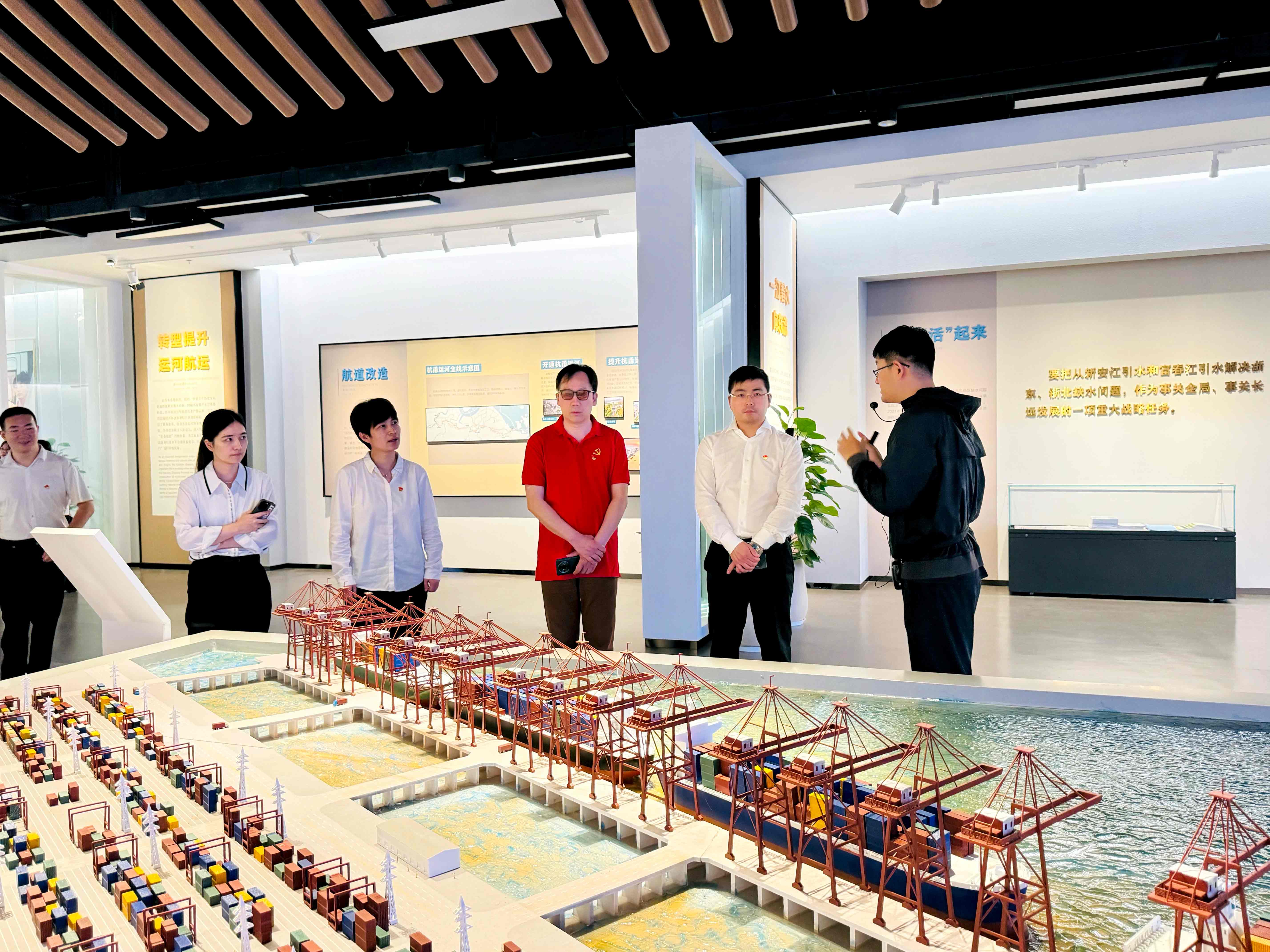 28日下午,為進(jìn)一步發(fā)揮黨建引領(lǐng)作用,譜寫(xiě)銀企共建合作新篇章,金廈集團(tuán)黨總支與平安銀行紹興分行行長(zhǎng)葉飛帶隊(duì)的黨總支部全體黨員們聯(lián)合開(kāi)展“黨建聚合力,銀企共發(fā)展”主題黨日活動(dòng),雙方黨員一起沿著習(xí)總書(shū)記去年考察浙江時(shí)的足跡走進(jìn)浙東運(yùn)河博物館。浙東運(yùn)河博物館位于越城區(qū)浙東運(yùn)河文化園內(nèi),總建筑面積3.4萬(wàn)平方米,分為“魚(yú)米之鄉(xiāng)溯河源”、“千古名河濟(jì)天下”、“越風(fēng)河韻鑄人文”、“因河筑夢(mèng)興浙東”、“流向未來(lái)的幸福河”五大展廳,重點(diǎn)反映了2500多年來(lái)浙東運(yùn)河工程體系和水運(yùn)演變,以及獨(dú)特的歷史地位和文化遺產(chǎn)價(jià)值。在館內(nèi),全體黨員通過(guò)文物展示、視頻呈現(xiàn)和講解員的細(xì)致解讀,深入體會(huì)了浙東運(yùn)河千年水脈演變的厚重底蘊(yùn),領(lǐng)會(huì)到習(xí)總書(shū)記關(guān)于大運(yùn)河文化建設(shè)的重要指示精神,也在歷史文脈中感受源遠(yuǎn)流長(zhǎng)的中華文明。