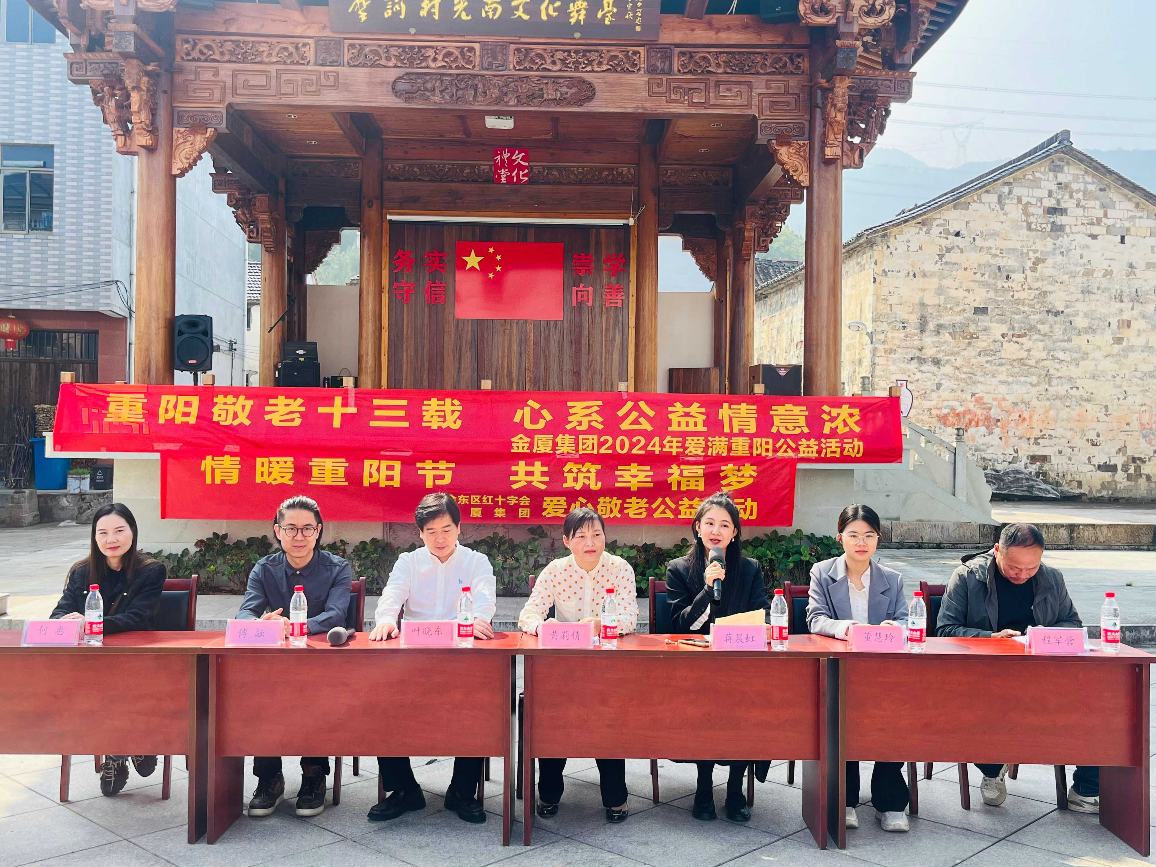 在2024年重陽節(jié)即將來臨之際,為進一步弘揚中華民族尊老敬老的傳統(tǒng)美德,展現(xiàn)企業(yè)的社會責任感, 10月10日上午,金華市政協(xié)委員、金廈集團董事長蔣晨虹率集團高管及各條線負責人一行再次前往金東區(qū)嶺下鎮(zhèn)摩訶村,開展“情暖重陽節(jié),共筑幸福夢”重陽慰問活動,為村里老年人和困難家庭送上慰問金、慰問品,并通過豐富多彩的活動為大家送上節(jié)日的美好祝福。這也是金廈集團連續(xù)第13年開展重陽節(jié)助老公益活動。