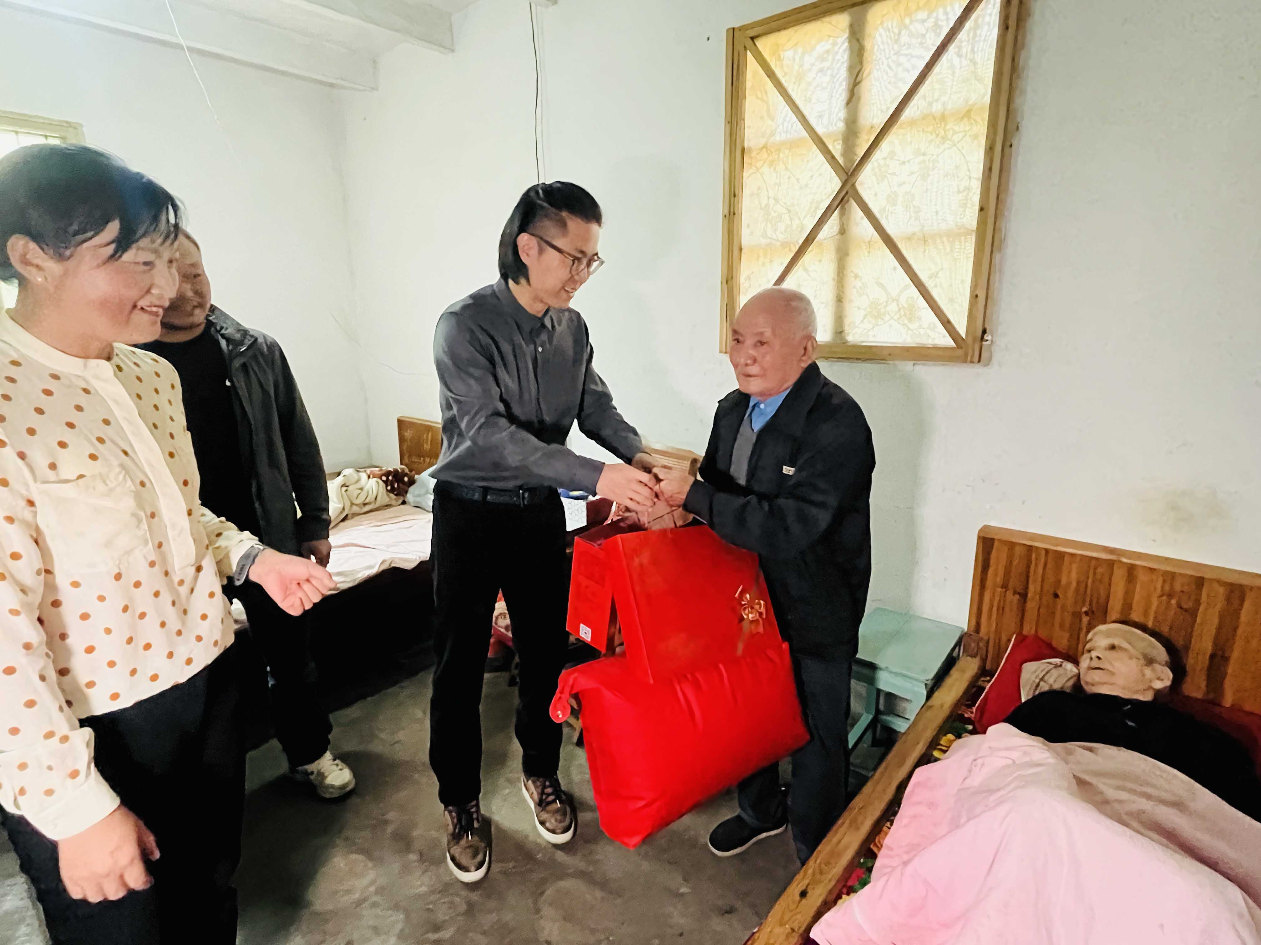 “重陽節(jié)快樂,祝你們健康長壽!”在村領導的陪同下,蔣晨虹董事長、傅融總裁一行走訪了村里的困難家庭,為他們送上慰問金及食物、被子、洗浴用品等生活物資,并與他們親切交談,關心詢問他們的身體狀況和生活情況。這不僅讓困難家庭感受到了社會的溫暖和關懷,也進一步體現(xiàn)了金廈對弱勢群體的關注和支持。
